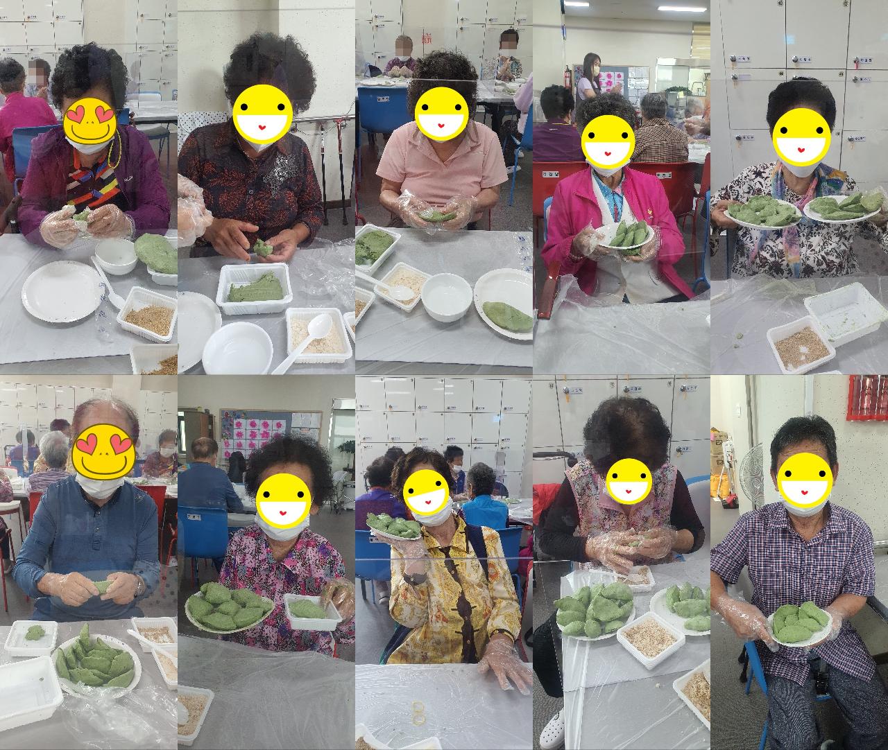 추석을 맞이하여 모싯잎 송편 만들기를 하였답니다. 어르신들 모두 너무 예쁘게 잘 빚으시고 직접 빚은 송편으로 간식도 먹었어요~