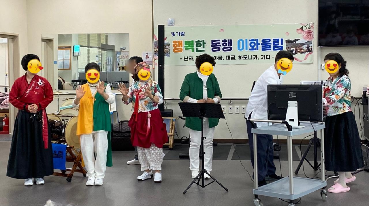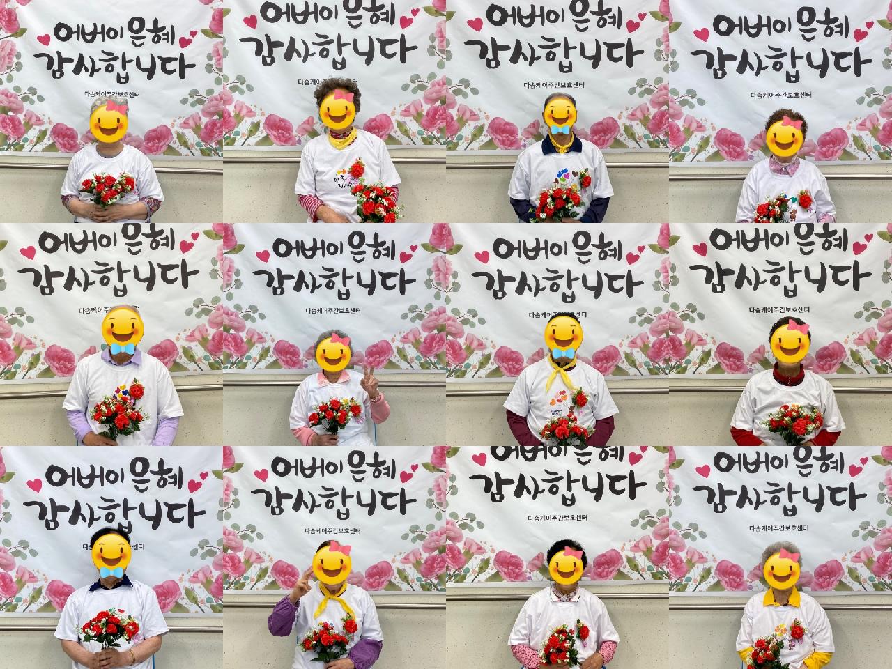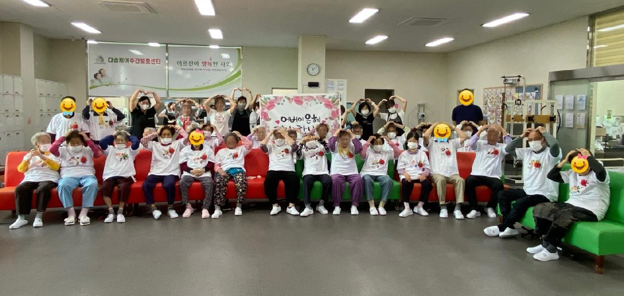 다솜케어주간보호센터에서는 어버이날을 맞아 따뜻하고 즐거운 행사를 진행했습니다. 특별히 이화울림 공연팀이 방문해 신명나는 무대로 어르신들의 흥을 돋워주셨고, 어르신들께서 직접 만드신 티셔츠를 입고 정성껏 준비한 카네이션을 손에 들고 기념촬영도 함께 하셨답니다. 밝은 표정으로 사진을 찍는 어르신들의 모습에서 감동과 행복이 가득 느껴졌던 하루였습니다. 늘 건강하시고, 웃음 가득한 날들만 가득하시길 바랍니다.