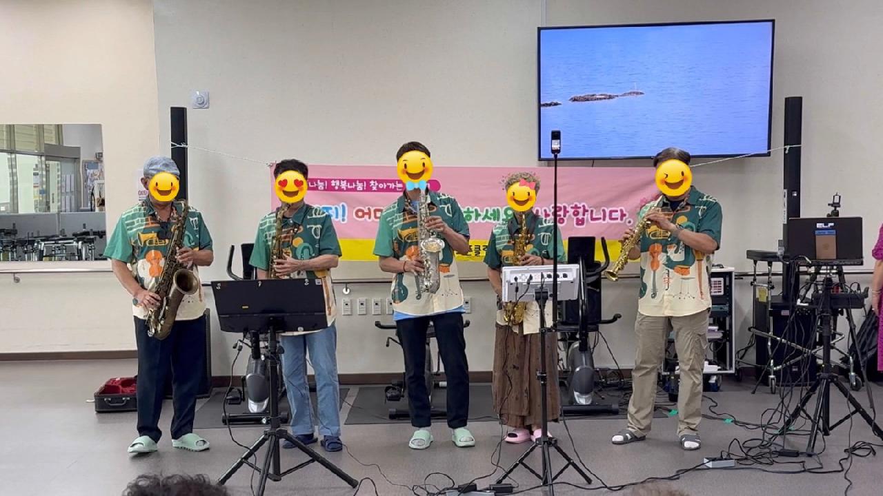 지난 7월 18일, 센터에서는 색소폰 연주자 및 가수분들의 재능기부로 특별한 문화 공연이 진행되었습니다. 비가 오고 흐린 날씨였지만, 그 덕분에 더 포근하고 정겨운 분위기 속에서 진행된 공연이었습니다. 약 1시간 동안 이어진 공연은 감미로운 색소폰 연주로 시작해 점점 흥겨운 분위기로 이어졌고, 어르신들과 선생님들께서 함께 춤을 추며 무대를 즐기는 모습에 모두의 얼굴에 환한 미소가 피어났습니다. 공연 중간에는 어르신들의 노래 장기자랑 시간도 마련되어, 멋진 노래 실력을 뽐내시며 박수갈채를 받았습니다. 공연을 함께하신 어르신들께서는 "이런 공연이 자주 있었으면 좋겠다"는 따뜻한 소감을 전해주셨습니다.