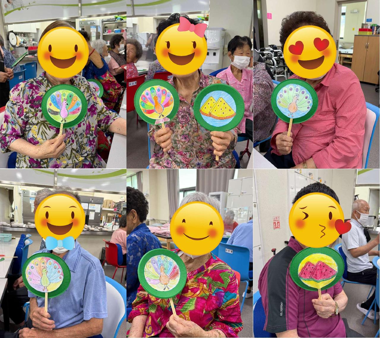 8월 5일(월), 다솜케어주간보호센터에서는 어르신들과 함께 여름 미술 활동으로 부채 만들기 프로그램을 진행했습니다. 수박 모양과 공작 모양의 부채 도안에 색칠을 하고, 직접 조립하여 나만의 부채를 완성하는 시간으로, 어르신들께서 매우 집중해서 활동에 참여해 주셨습니다. 완성된 부채로 시원하게 부채질도 하시고, 귀가하실 때도 소중히 챙겨가시는 모습이 인상정이었습니다^^
