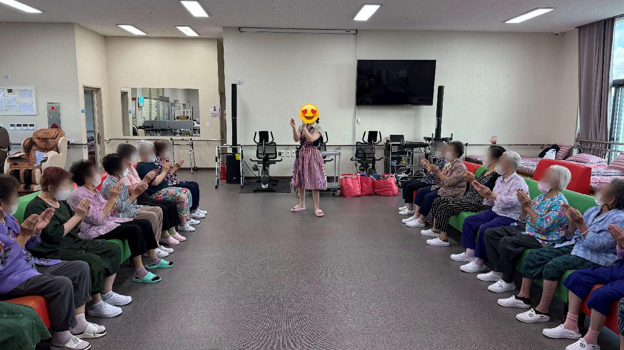 다솜케어주간보호센터에서는 매주 금요일마다 꽃님이 선생님과 프로그램을 진행합니다^^ 어르신들은 먼저 건강박수 스트레칭을 몸을 풀고, 이어서 별모양 탬버린 치기 활동으로 리듬을 느끼며 즐거운 시간을 가졌습니다. 마지막 순서에서는 음악 "아모르파티"에 맞춰 반짝이는 응원 술을 흔들며 율동을 하셨습니다. 센터 안은 박수와 웃음으로 가득 찼고, 어르신들 모두 활기차게 프로그램에 참여하셨습니다. 다솜케어주간보호센터는 어르신들의 건강과 즐거움을 위해 매일 다양한 프로그램을 운영하고 있습니다. 언제든 상담 문의 주시면 정성껏 안내해드리겠습니다^^