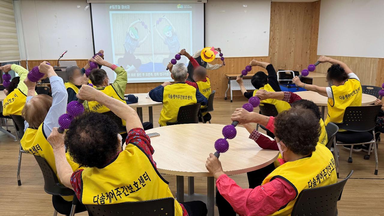 추석 연휴가 지나고 다솜케어주간보호센터 어르신들께서는 국립나주숲체원에서 진행된 숲속치매안심학교 프로그램에 참여하셨습니다. 오전에는 스파이키 트윈 롤러를 활용한 마사지 수업이 진행되어 어르신들이 시원함을 느끼며 활기찬 시간을 보냈습니다. 점심식사 후에는 가을 숲속 식물 관찰 수업에서는 두충나무 잎을 조심스럽게 잘라 실처럼 길게 늘려보는 체험을 통해 자연의 신비로움을 직접 느껴보셨습니다. 활동을 마친 뒤에는 음악에 맞춰 율동과 체조를 하며 웃음이 가득한 시간을 보내셨습니다. 다가오는 11월 졸업식을 앞두고 진행된 이번 프로그램은 그 어느 때보다 뜻깊고 특별한 하루였습니다. 다솜케어주간보호센터는 앞으로도 어르신들의 건강한 일상과 행복한 여가를 위해 다양한 체험활동을 이어가겠습니다. ☎ 이용 상담 및 문의 환영합니다. 프로그램 참여 및 입소 상담은 언제든 문의주세요 어르신 한 분 한 분의 즐거운 하루를 함께 만들어가겠습니다.
