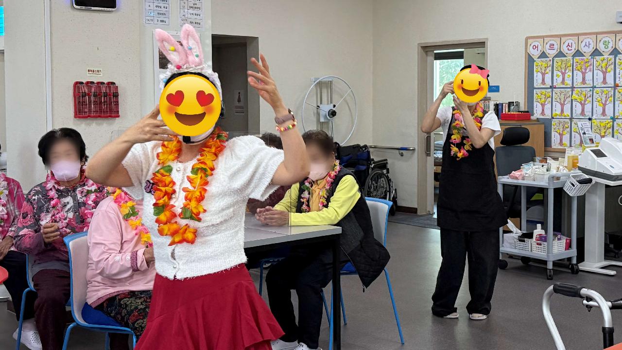 꽃목걸이 걸고 훌라훌라~ 웃음이 선생님과 함께한 즐거운 인지활동!