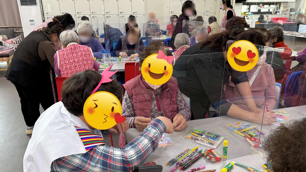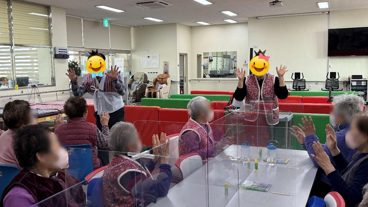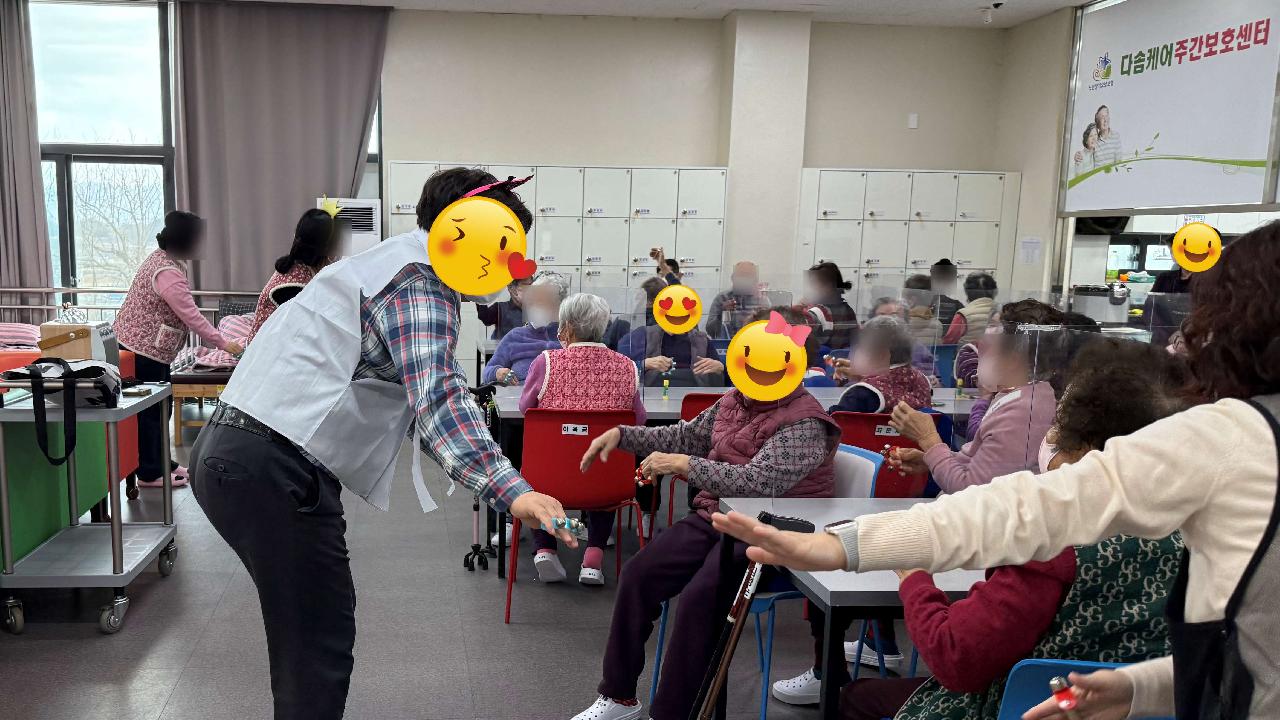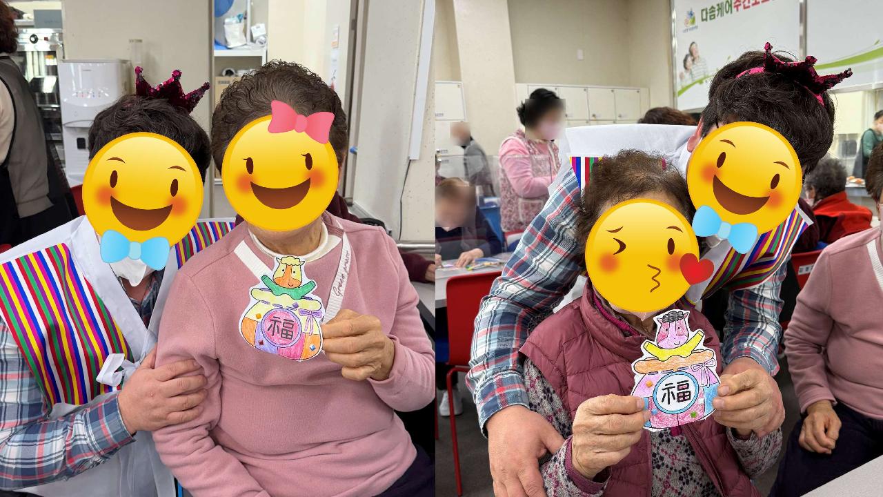 화요일은 콩쥐, 팥쥐 선생님이 오시는 날입니다. 이번주는 새해를 맞아 복주머니 만들기 프로그램을 진행했습니다. 이번주는 특별히 두꺼비 선생님도 함께 오셔 어르신들께 더 즐거운 시간을 선물해주셨습니다. 전래동화 속 두꺼비처럼 복을 전해주러 오신 것 같았답니다. 다솜케어주간보호센터는 이렇게 어르신들께서 즐겁게 참여하실 수 있는 다양한 프로그램을 꾸준히 진행하고 있습니다. ☎ 센터 이용 및 상담 언제든지 편하게 문의해 주세요. 어르신의 상황에 맞춰 친절하게 안내해드리겠습니다.