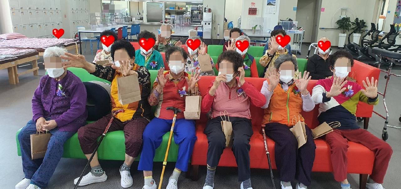 어버이날을 맞아 센터에서 꽃과 선물을 준비해봤어요. 어르신들 엄청 기뻐 하시네요 어버이날 점심특식과 축하공연도 함께 진행하였습니다. 어르신들~ 늘 건강하시고 행복하세요 ♡