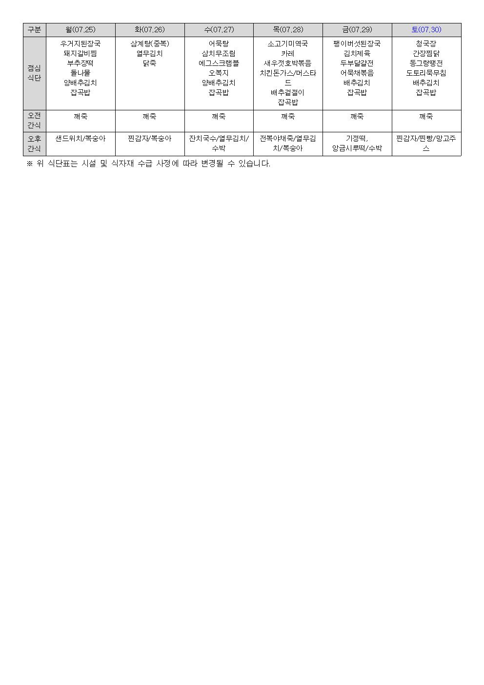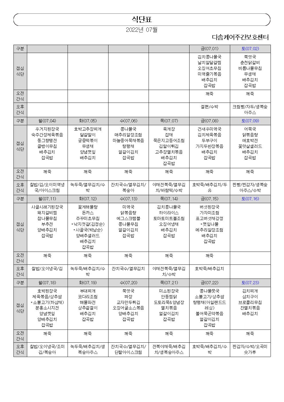 2022년 7월 식단표