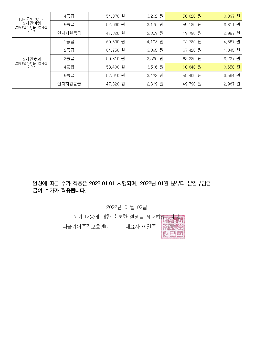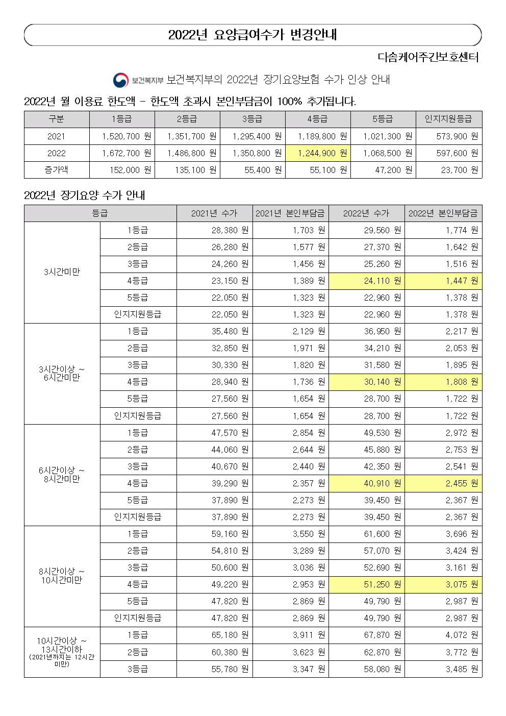 2022년 급여수가 변경안내