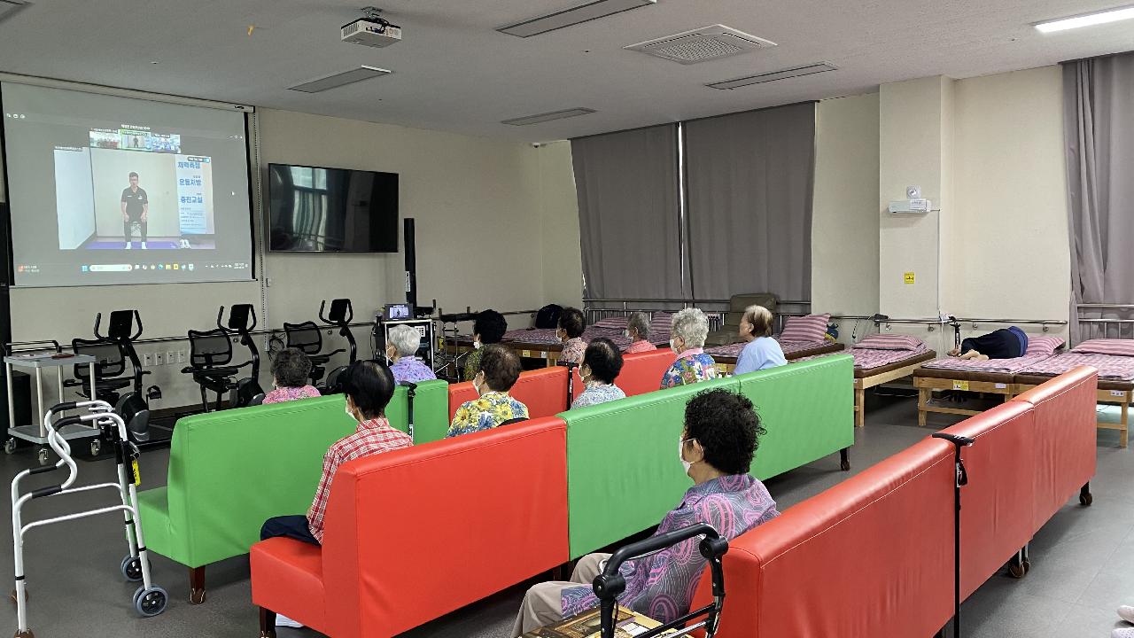 다솜케어주간보호센터에서는 어르신들의 건강한 일상을 위해 목포체력인증센터와 연계한 온라인 체조 프로그램을 운영하고 있습니다. 이 프로그램은 매주 월, 수, 금요일, 주 3회 정기적으로 진행되고 있습니다. 어르신들의 체력 수준에 맞춘 맞춤형 운동으로 구성되어 있어 무리 없이 즐겁게 따라 하실 수 있으며, 처음에는 낯설어하셨던 어르신들도 지금은 프로그램 시간이 기다려진다고 말씀하실 정도로 적극적으로 참여하고 계십니다. 건강한 몸과 마음을 위한 작은 실천, 다솜케어주간보호센터에서는 앞으로도 어르신들과 함께 즐겁고 활기찬 하루를 만들어가겠습니다.