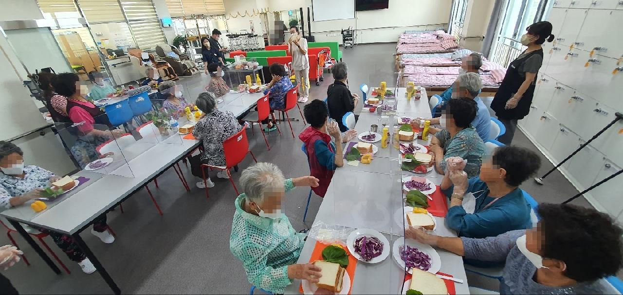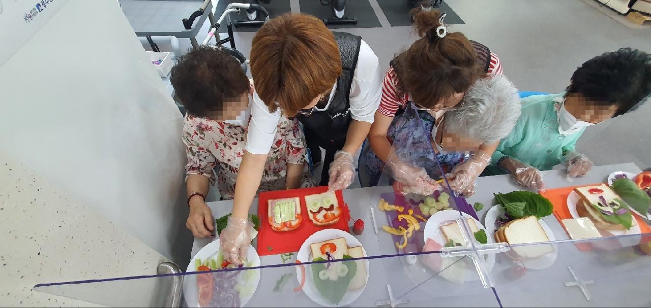 나주시치매안심센터에서 전문 강사님 파견되어 음식을 이용한 인지활동을 하였습니다. 식빵위에 식재료를 이용하여 얼굴 꾸미기를 하고 작품 발표도 해보고 즐거운 시간을 가져보았습니다.