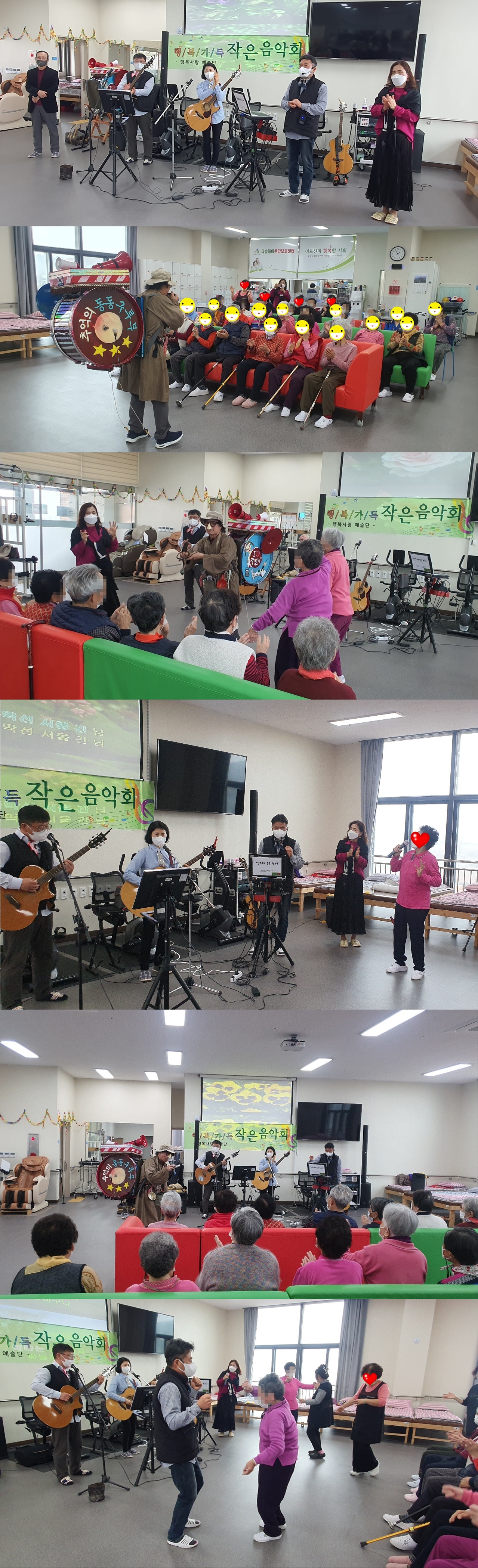 작은 음악회 및 각설이 타령으로 어르신들 즐거운 시간을 보냈어요~ 박수를 치면서 노래를 따라 부르고 동동구루미 북소리에 옛 추억에도 젖어보았답니다.