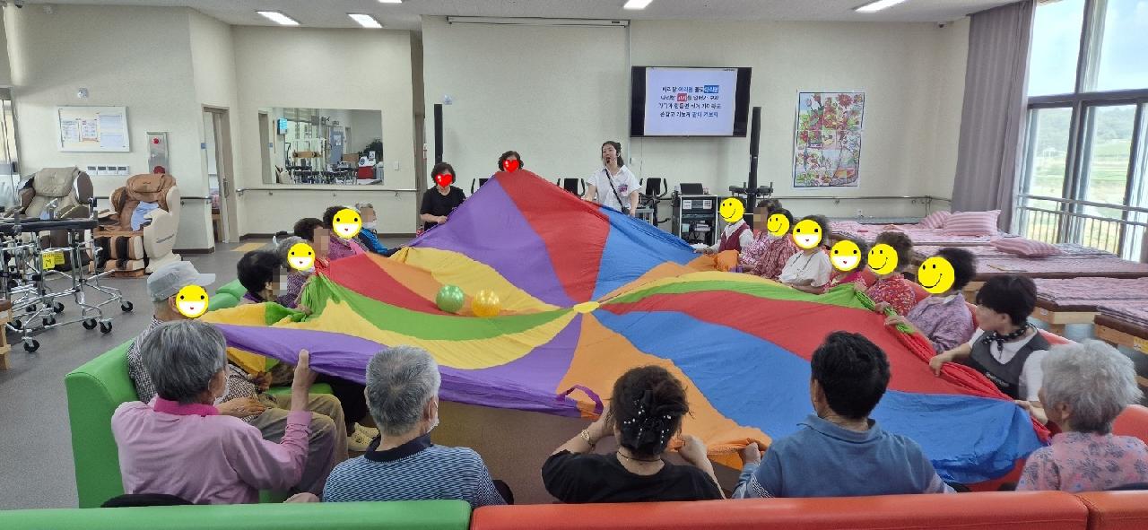 협동놀이활동으로 파라슈트를 이용한 활동을 재밌게 수행함